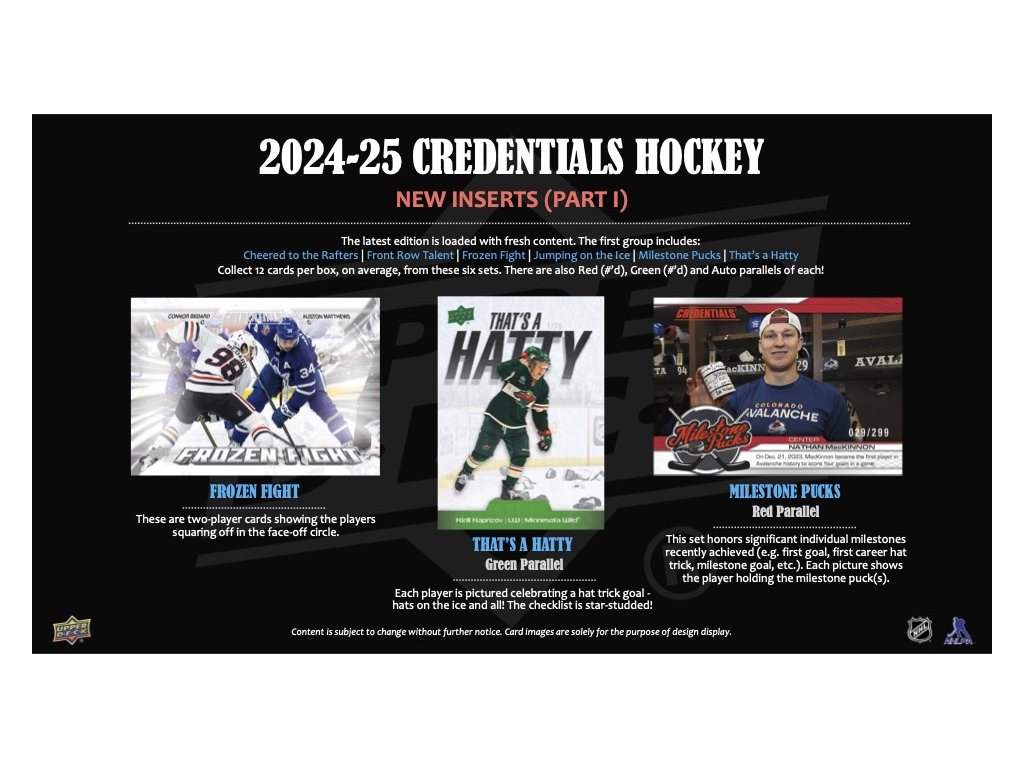 Nejnovější edice Credentials obsahuje 150 karet základního setu včetně 50 karet nováčků - Debut Ticket Access, která je ve dvou verzích: horizontální a vertikální (limitované do /999). Paralelní verze jsou rozmanité a obsahují dokonce hard-sign podpisy!