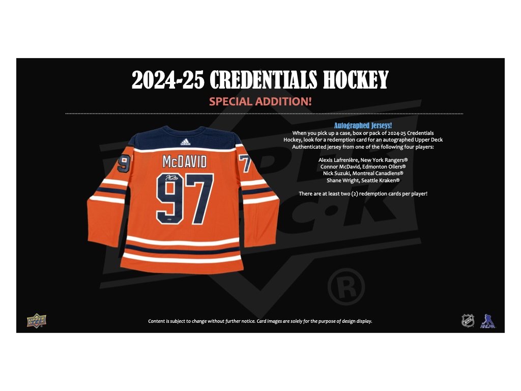 SPECIÁLNÍ PŘÍDAVEK - v tomto ročníku si výrobce připravit opravdu zajímavý tahák - hledejte redemptions karty, po kterých získáte podepsaný dres reálné velikosti - Upper Deck Authenticated jersey jednoho ze čtyř hráčů: