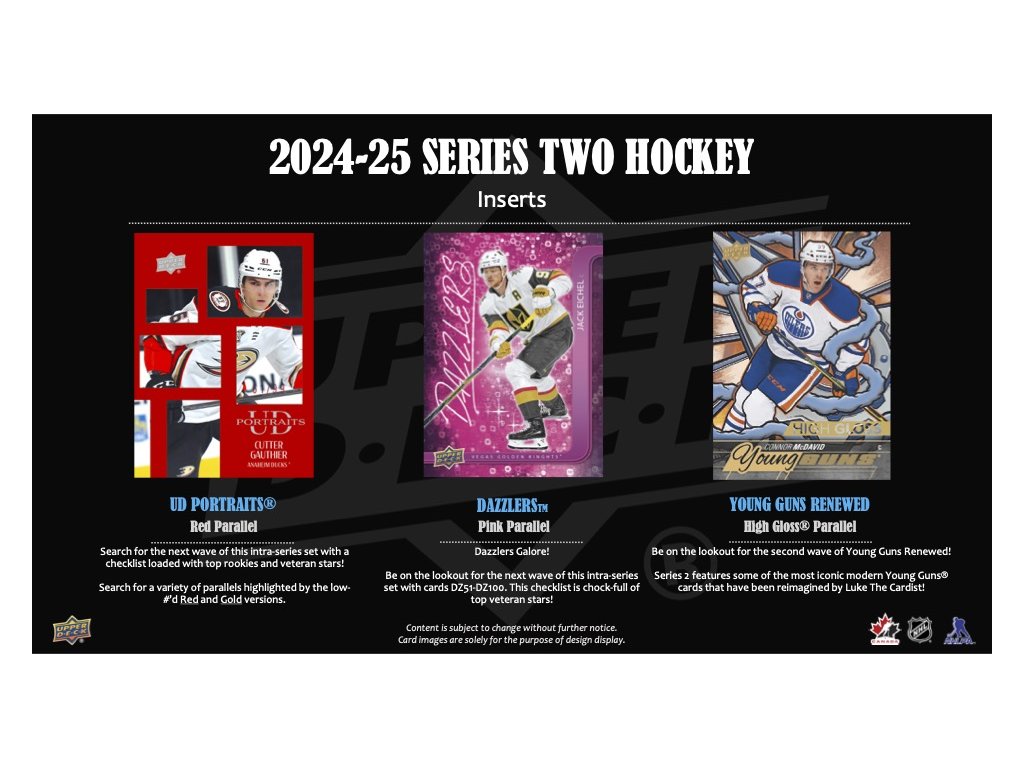 Jedny z nejoblíbenějších karet z nováčkovské scény jsou zpět a SERIES 2 přináší to nejlepší jméno - MACKLIN CELEBRINI! Momentálně nejlepší nováček sezóny 2024-25 bude velmi žádanou a cennou ozdobou této série. Na paty mu šlape letec z Philadelphie - MATVEI MICHKOV. Hledejte jejich nováčkovské karty YOUNG GUNS v limitovaných verzích, které budou jistě ozdobou vaší sbírky.