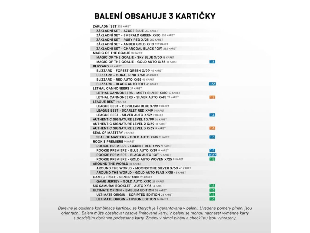 Poměr vložení kartiček do balení je podmíněn garancí obsahu v Exclusive boxu, který najdete v přiloženém obrázku.
