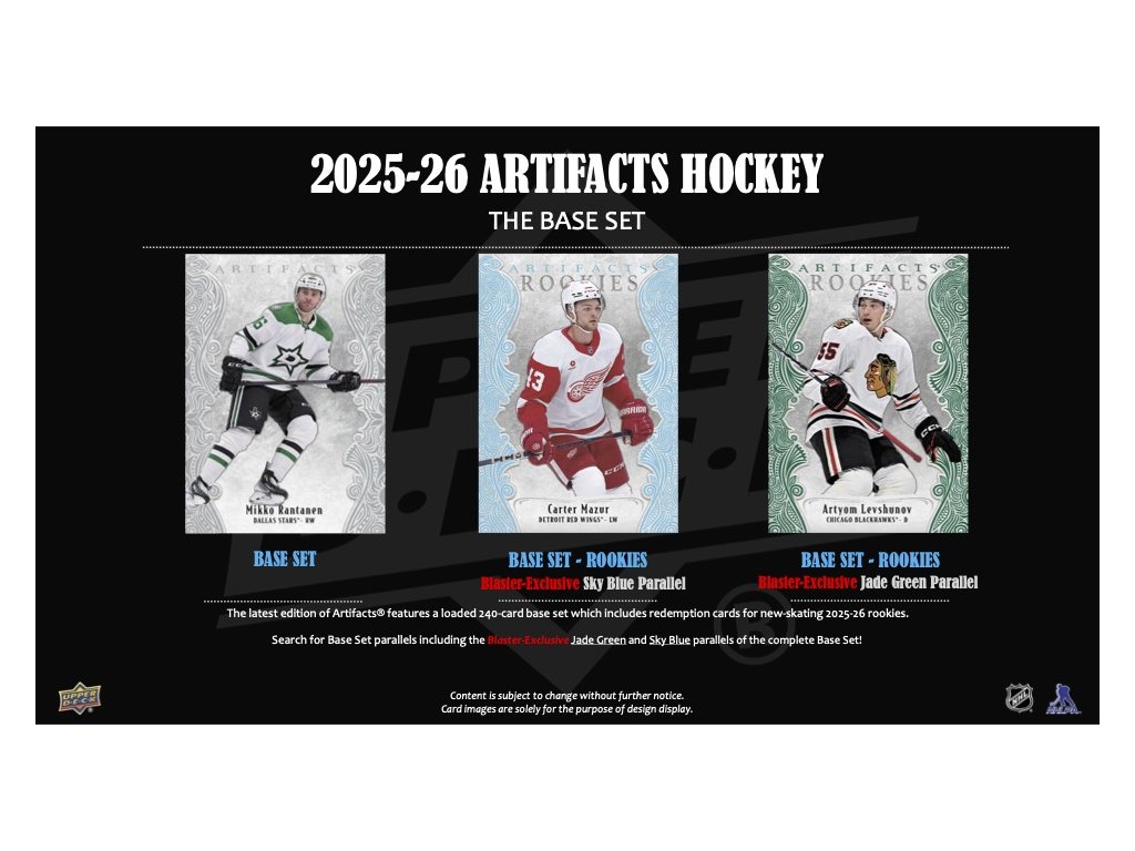 Nejnovější edice Artifacts® nabízí nabitý 240-kartový základní set, který zahrnuje také redemption karty nováčků ročníku 2025-26.
