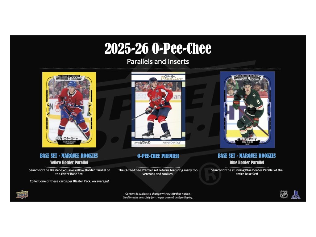 O-Pee-Chee se pyšní komplexním základním setem obsahujícím 600 karet, který zahrnuje 100 kartový highseries subset, jenž obsahuje pouze karty z 4 Nations Face-Off Stars a 2025-26 Marquee Rookie.