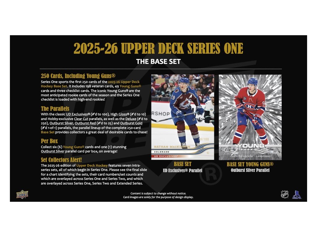 Série 1 obsahuje prvních 250 základního setu. Obsahuje 198 karet veteránů, 49 karet nováčků - YOUNG GUNS a 3 karty chechlistu.